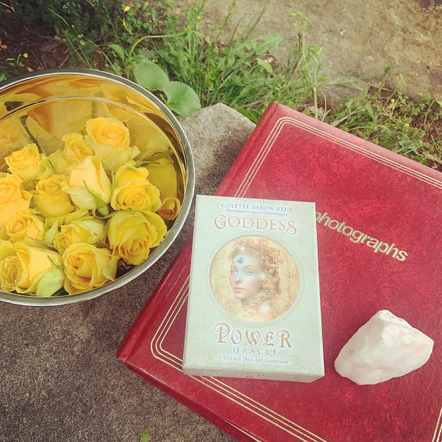 Over the next few days I like to visit this spot in my garden. I just breathe and surrender. The signs always seem to come. Last year a yellow finch flew literally right across my path just a few inches from face, as I finished reading a message from the card I pulled. It proceeded to sit in a tree across the garden staring at me. I felt her so strongly, it took my breath away. It was magical.